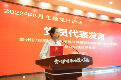 专题党课结束后,省卫生健康委直属机关党委专职副书记、机关党办党支部书记郑娟同志,省卫生健康委机关党委副书记、机关纪委书记王振宇同志,我院公共基础部教师第一党支部陈荷玥同志以及我院教师、“全国教书育人楷模”“全国五一巾帼标兵”“全国五一劳动奖章获得者”李红波作为党员代表和先进典型代表先后发言。