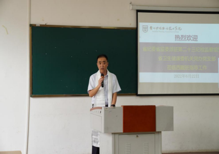为深入学习贯彻省第十三次党代会精神,切实加强对党员干部特别是年轻同志的警示教育和培养管理,按照省纪委省监委机关党委、省卫健委机关党委和学院党委的有关要求,6月22日下午,省纪委省监委派驻第二十三纪检监察组党支部、省卫生健康委机关党办党支部到我院金海校区与我院九个党支部党员同志及部分学生入党积极分子以“重温红色记忆 感悟初心使命”为主题,联合开展6月主题党日活动。