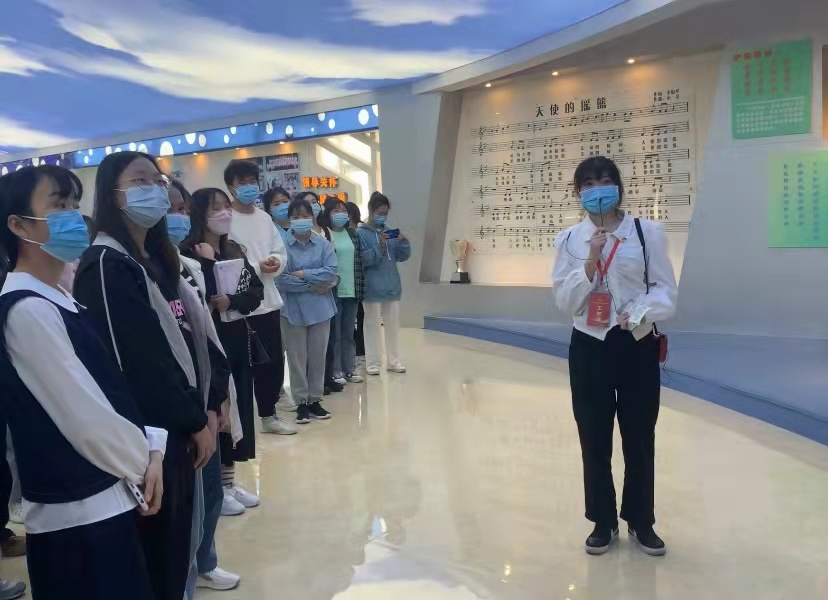 同学们认真聆听校史讲解