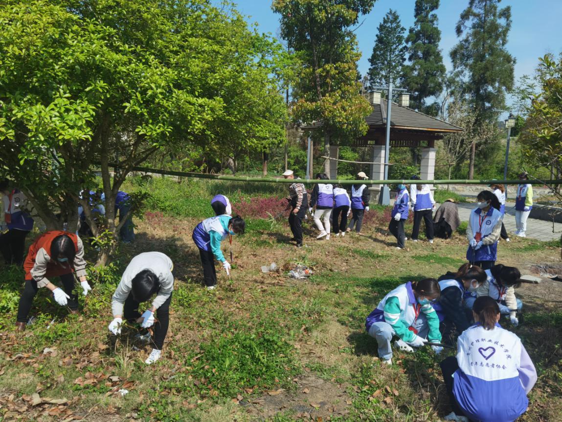 后勤处联合团委青年志愿者协会积极组织全院师生开展,“杂草丛生全除净,送‘你’一朵迎春花”校园劳育活动,40多名志愿者们用实际行动践行初心,增强了责任意识、环保意识和主人翁意识,发扬了乐于奉献和团结协作的精神。