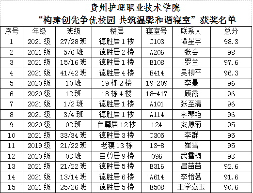 “和谐寝室”获奖名单