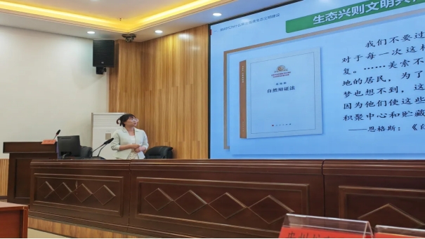 我院马克思主义教学部思政骨干教师谭宗扬以《积极践行社会主义核心价值观》为课题,将“觉醒年代”生动的人物故事以“一例到底”的教学模式进行层层剖析和演绎,将道理娓娓道来,为大家带来了一堂高质量的示范课。我院马克思主义教学部青年思政教师张菁菁,以《建设社会主义生态文明》为题进行教学展示,以楼兰古国的繁盛兴衰、乌江的生态变迁为案例,设置精巧提问,深度贴合学生专业,受到专家的认可。