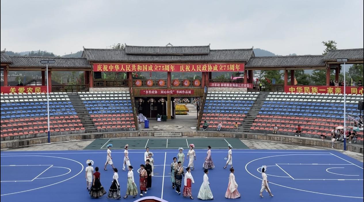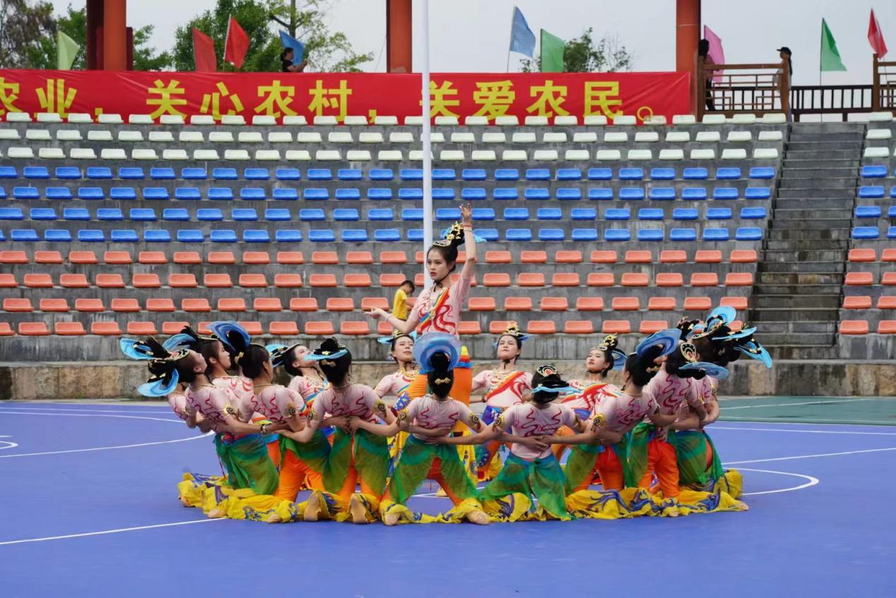 9月28日上午,金海雪山音寨演艺广场,阳光和煦,秋风送爽,丰收锣鼓随着缕缕桂香声声敲响。8181801威尼斯一百多名学子,踏着优美的旋律翩翩起舞,为乡村振兴文化活动注入了青春活力。
