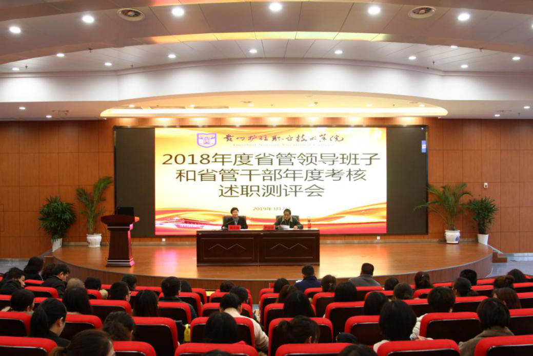 黄亚励书记首先代表学院领导班子作题为“夯根基、提质量、促发展”2018年度述职述廉报告。她就强化党建引领、加快发展步伐,坚持“立德树人”、强化内涵建设,发挥职教优势、助推脱贫攻坚,潜心传道授业、屡创办学佳绩四个方面,对学院2018年工作完成情况及2019年十大重点工作任务等重要内容进行了全面、细致地汇报,并表示2019年学院将围绕“夯基础、强内涵、促发展”的主题,以落实十大重点任务为抓手,全面推进学院快速发展,为服务我省大健康产业的发展作出更大贡献。