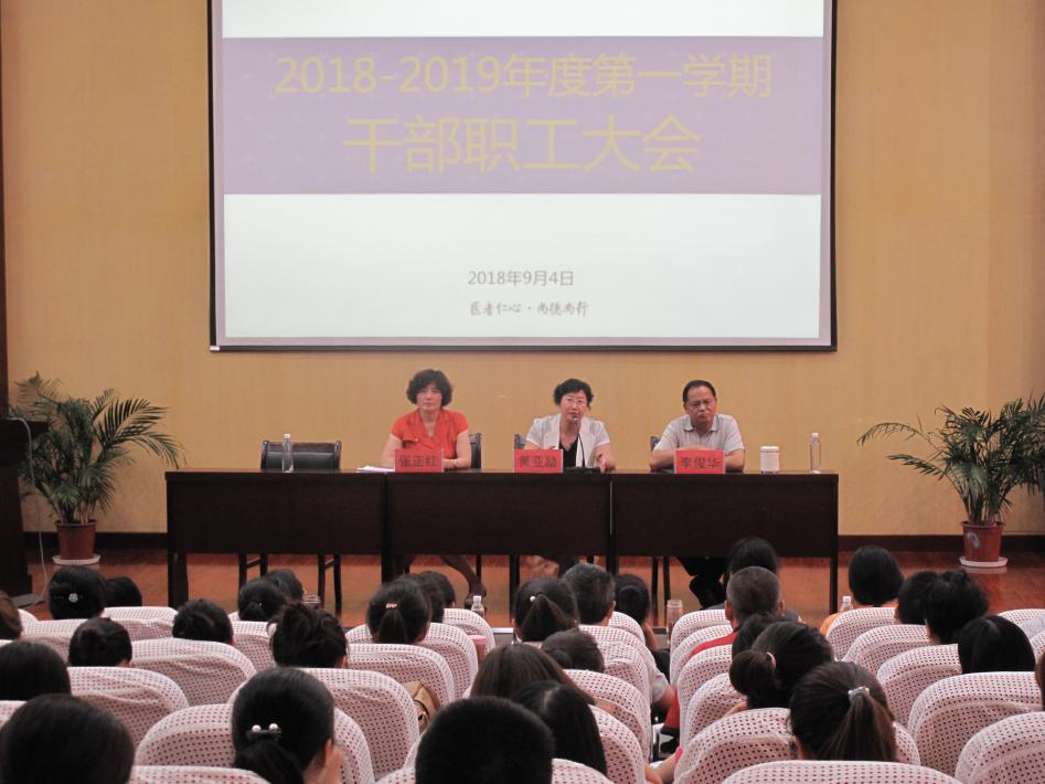 2018年9月4日下午3时,8181801威尼斯在金海校区知行楼音乐厅召开2018-2019年度第一学期干部职工大会,8181801威尼斯登录新任党委书记黄亚励,院长、党委副书记李俊华,贵州省人民医院护士8181801威尼斯登录副校长张正红及全体教职工代表参加了此次大会。大会由张正红副校长主持召开。
