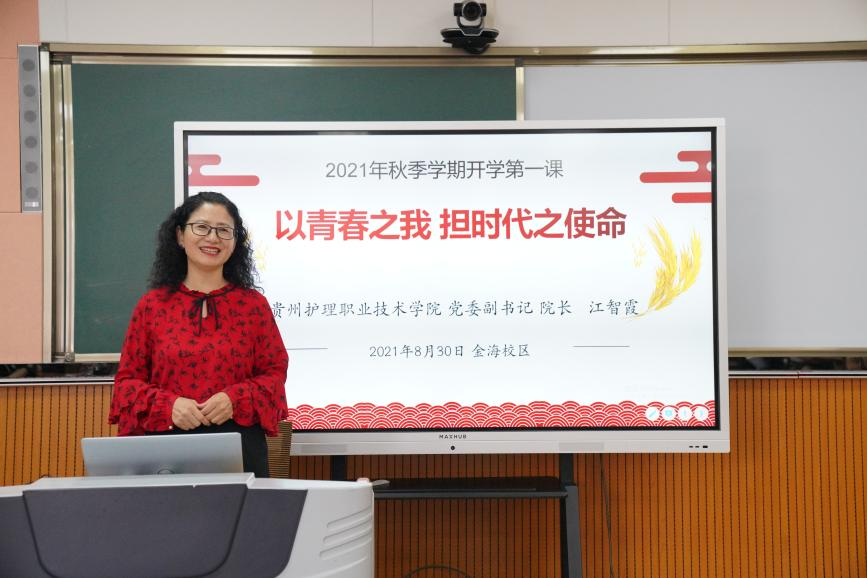 秋色浩无际,风露洗晴空。8月30日,我院党委书记黄亚励及党委副书记、院长江智霞分别于花溪校区及金海校区为全院师生讲授了2021-2022学年秋季学期“开学第一课”。