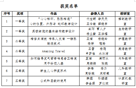 二等奖教师团队(护理教研室、英语教研室)