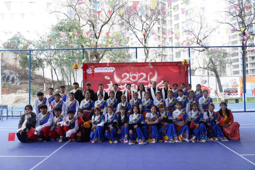 欢歌笑语贺新春,欢聚一堂迎牛年;牛年牛气牛奋蹄,一年一岁一峥嵘。2月9日下午,我院首届中职西藏班2021年迎春联欢会在花溪校区隆重举行。学院党委书记黄亚励,党委副书记、院长江智霞,党委副书记吴忠红,党委委员、副院长徐晓筑,党委委员、副院长洪阳,党委委员、副院长潘忠伦,党委委员、副院长柏晓玲,各系(部、中心)、处室负责人(临时负责人)及关心西藏班成长的教职工代表出席了本次活动。