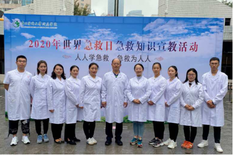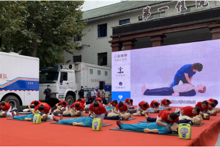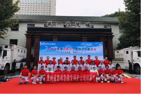 9 月12 日是世界急救日,今年的主题是“疫情下的急救”。为加快推进公民自救互救知识与技能培训工作,最大限度降低突发事件、自然灾害及突发公共卫生事件对人民群众带来的伤害,由贵州省卫生健康委主办的“2020年度贵州省9.12世界急救日宣传活动暨急救知识科普活动”在贵州医科大学附属医院第一住院部前广场举行。在徐晓筑副院长的带领下,我院实验实训中心和护理系共10位老师参加了此次活动。此外,参与活动的还有来自贵阳一中的在校学生、消防官兵、轨道交通公司和现场群众等200 余人。