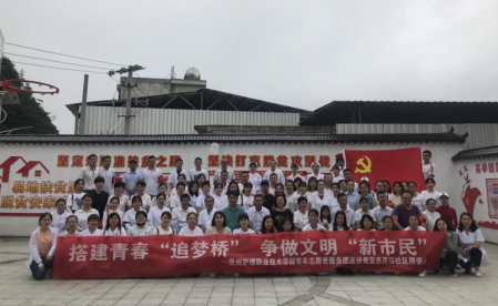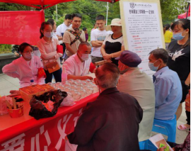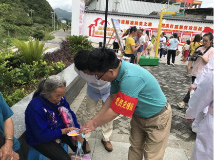 8月6日,8181801威尼斯四个党支部全体党员以及部分学生代表共107人由党委副书记吴忠红带队,到贵定县昌明镇昌明社区居委会易地扶贫搬迁安置点开展“新市民▪追梦桥”志愿服务活动,与当地居委会开展“心连心”座谈会,举行“微心愿”捐赠仪式,开展健康知识普及讲座、健康义诊及全民健身运动志愿服务。