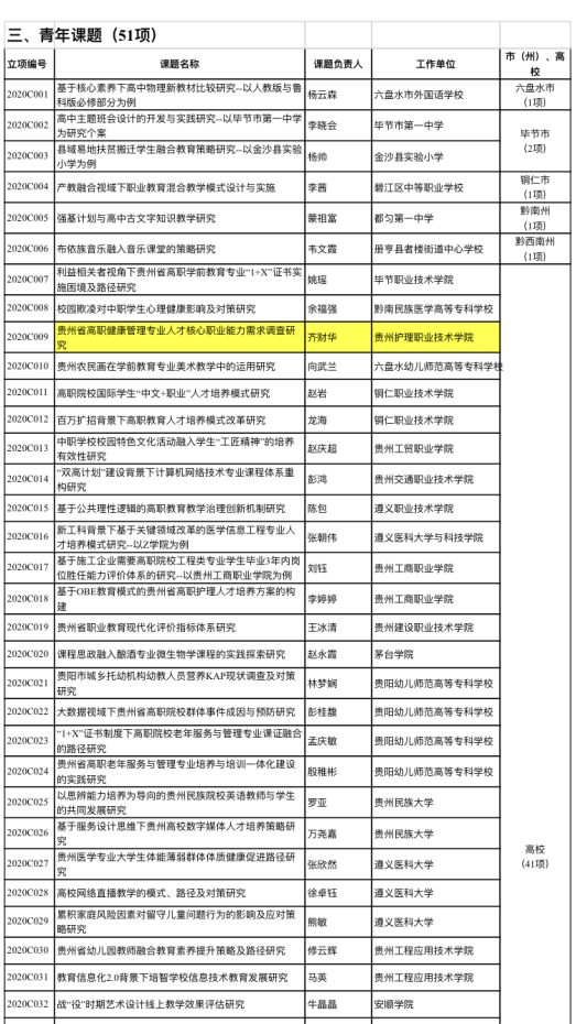 贵州省教育厅办公室日前公布了“2020年贵州省教育科学规划课题”立项名单。我院公共基础部李业明老师和基础医学部齐财华老师分别获得了教育科学规划重点课题和青年课题立项。