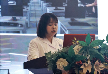 三名专业教师代表在会上进行教学工作交流。王婧老师从护理系概况、师资建设、教学科研、获奖情况及下一步工作计划作了交流;刘婷婷老师就德育教研室主要工作概述、教学情况、教学发展、工作中的不足进行交流并阐述了下一步工作措施和计划;金雪老师从思想政治、理论学习、教师业务水平提升及2020年的工作计划进行了交流。