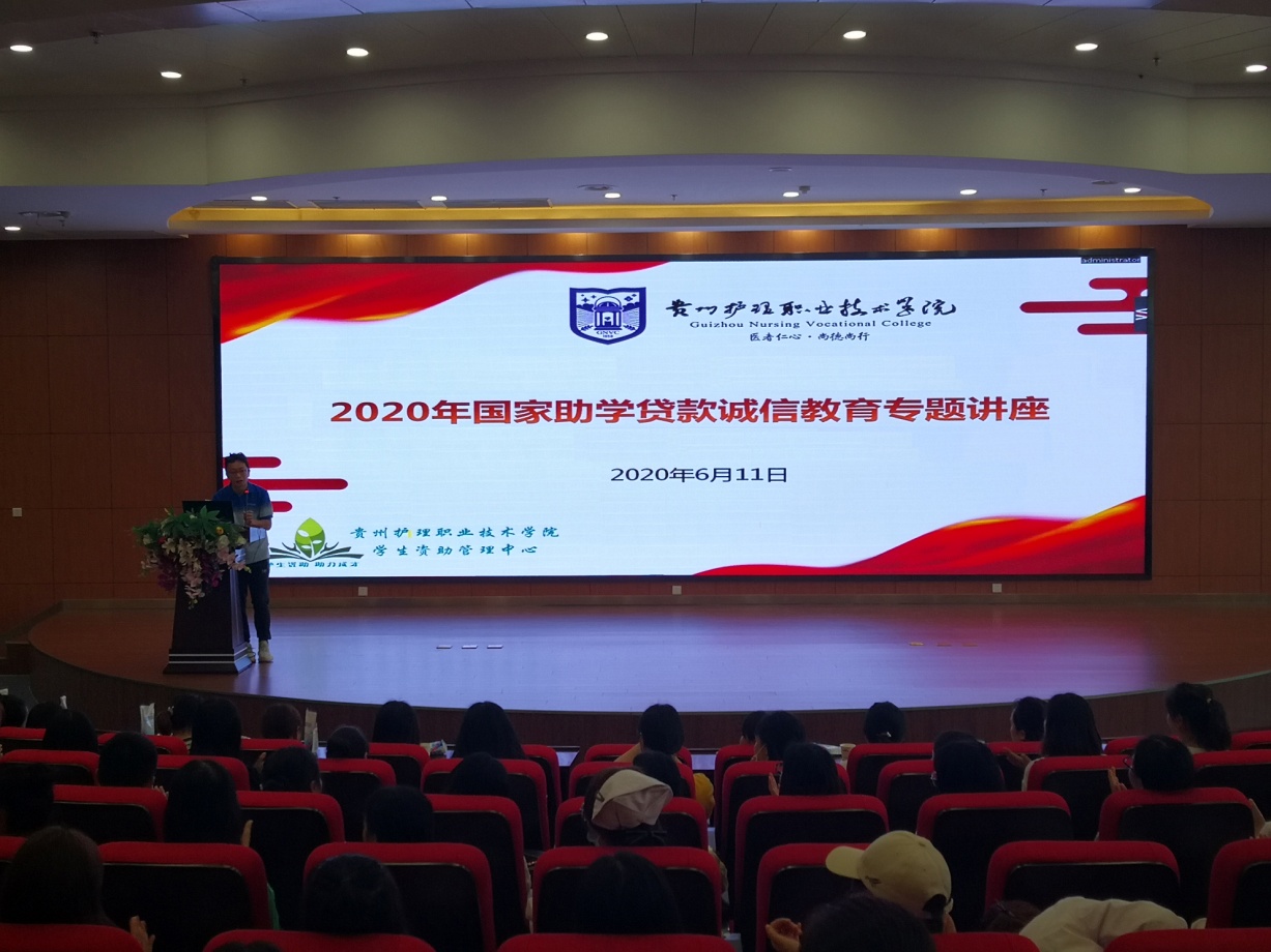 为了深入贯彻落实习近平总书记关于教育的重要论述,落实立德树人根本任务,增强当代大学生的诚信意识和责任意识,2020年6月11日下午,我院邀请中国农业银行南明支行工作人员汪雪花做为主讲人,在学生素养基地报告厅开展了2020年国家助学贷款诚信教育专题讲座,学生工作处、学生资助管理中心、中专部、辅导员老师们以及国家助学贷款的同学们参加了此次讲座。