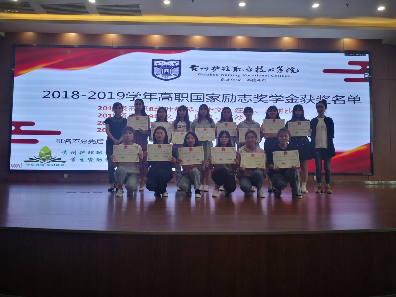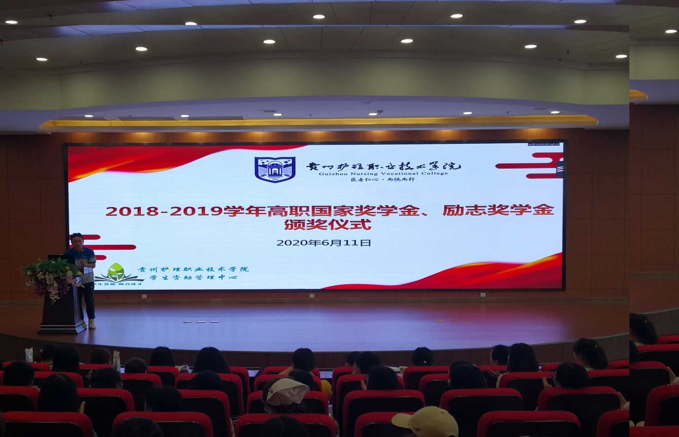 为了进一步推动学风建设,鼓励学生成才,营造优良的学习环境,2020年6月11日下午,学院在学生素养基地报告厅举办了2018-2019学年高职国家奖学金、国家励志奖学金颁奖仪式。出席颁奖仪式的有学生工作处李明华老师、中专部叶欣老师、学生资助管理中心全体老师、2018级高职辅导员老师、全体获奖学生及各班学生代表,颁奖仪式由学生资助管理中心邓宇老师主持。