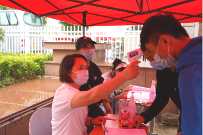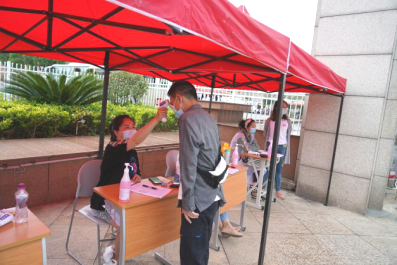 5月24日上午,学院领导一行来到学院大门外学生报到现场,仔细查看了学生报到流程及体温检测点的运作情况,嘱咐工作人员,一定要严格把好入校第一道关,严格执行测温、查验健康码、核对身份和消毒等程序,维持好入校秩序。