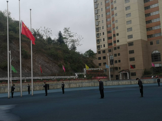 学院第一时间传达国务院公告精神,学院官方网站主页、微信公众号首页调为黑白色,以示哀悼。上午10时,学院党委书记黄亚励,党委副书记、院长李俊华,党委副书记吴忠红,党委委员、副院长徐晓筑分赴金海校区和花溪校区,同学院疫情防控工作各小组成员、驻守校园的教职工、后勤服务员工及物业管理人员一道,面向已降半旗的国旗台肃穆而立,向因抗击新冠肺炎疫情斗争牺牲烈士和逝世同胞肃穆默哀3分钟,表达深切哀悼。