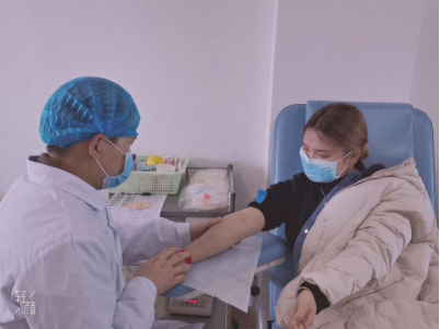蔡媛同学正在捐献血液