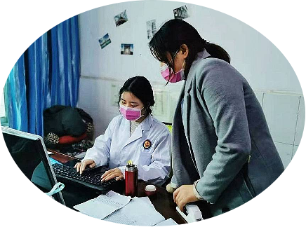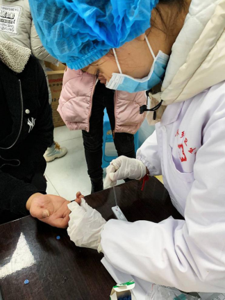 赵雪莲同学正在给群众检测血液