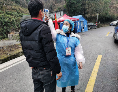 “因为疫情需要我随时都在。”2019级高职18班的杨丹同学如是说。目前杨丹同学在铜仁市江口县逃映镇监口点当志愿者,给每一位进出的群众测体温做登记。