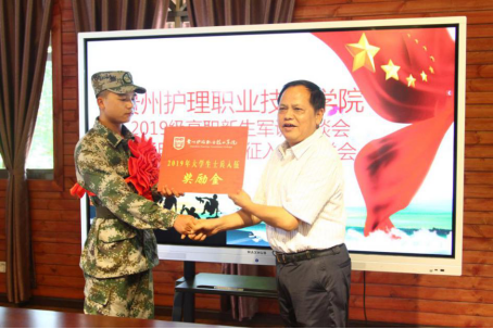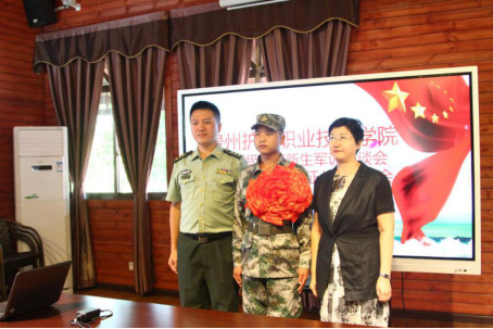 9月16日,2019级高职新生军训座谈会暨杨明瀚同学应征入伍欢送会在学院天使阁会议室举行。贵定县武装部周黎明部长一行,学院党委书记黄亚励,党委副书记、院长李俊华,党政办临时负责人罗湘莉,特聘专家张正红老师,学生工作处蓝俊老师,杨明瀚同学及其家长,军训教官和应征学生代表参加了会议。