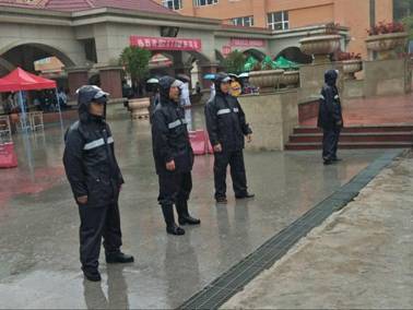 保卫人员在出入大门口对车辆行驶进行引导、对往来人群进行交通疏导,在校园开展不间断巡逻保卫,安排专人在监控室进行治安防范监控。
