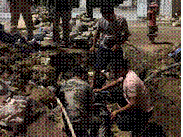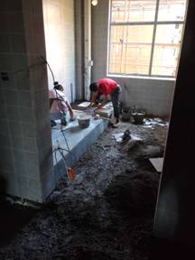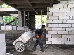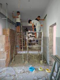 | 学生食堂正在进行内部墙体砌筑工作 |