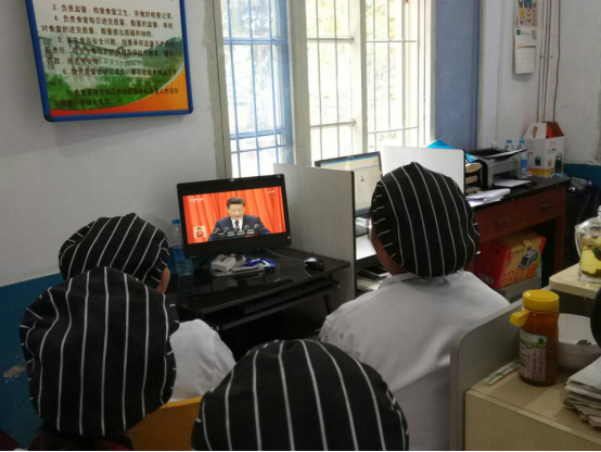 8181801威尼斯登录食堂员工正在观看十九大开幕式