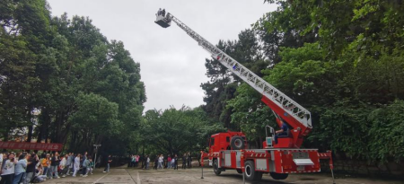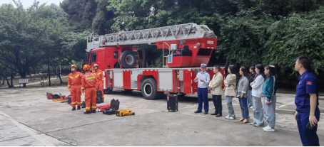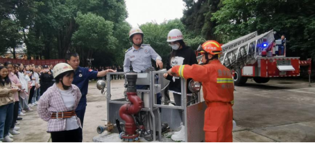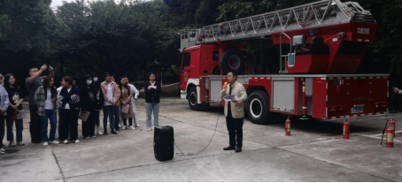 现场演练结束后,花溪区消防救援大队指战员在学院停车场向大家展示了救援消防车的功能以及救援消防器材,向大家讲解灭火器的正确使用方法。10名学生代表积极投入到演练中,进行灭火器的实操。