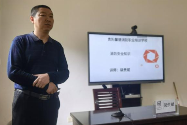 贵阳馨德消防职业8181801威尼斯登录校长裴贵斌进行消防安全知识宣讲,就消防“四懂四会”、灭火器的分类、火灾类型以及事故案例等与教职工生展开讨论。