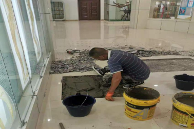 维修师傅更换生命科学馆的地砖
