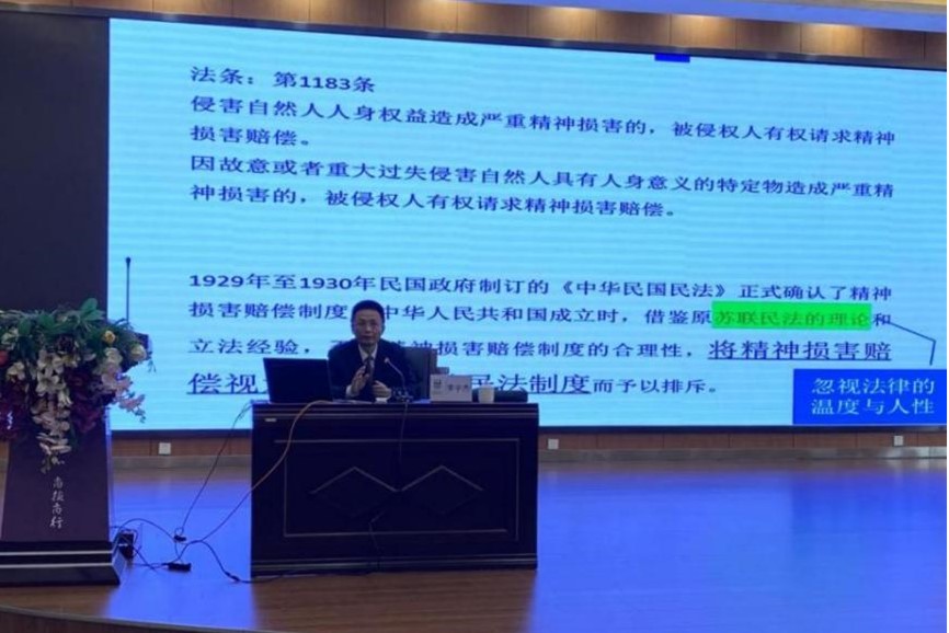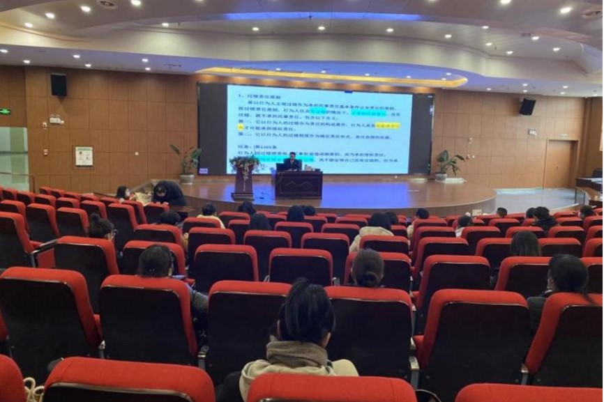 为深入贯彻落实习近平总书记关于切实实施《中华人民共和国民法典》的重要讲话精神,进一步树立法律信仰,弘扬法治精神,开展法治教育,大力营造良好的校园法治文化氛围,11月24日下午,学院法律顾问、贵州贵达律师事务所李宇杰律师,受邀到我院作题为《民法典——侵权责任编》专题讲座。学院党委委员、纪委书记杨伯兵,各系(部、中心)、处(临时)负责人,科室临时负责人,后勤部门班组长聆听了此次讲座。