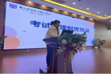 随后,教务处教务科临时负责人冉鲜解读了我院考试管理相关制度重点条款,尤其是在考核方式、考试命题、试卷的审批和报送、试卷的制作及保管及考试实施等方面进行了详细解读。