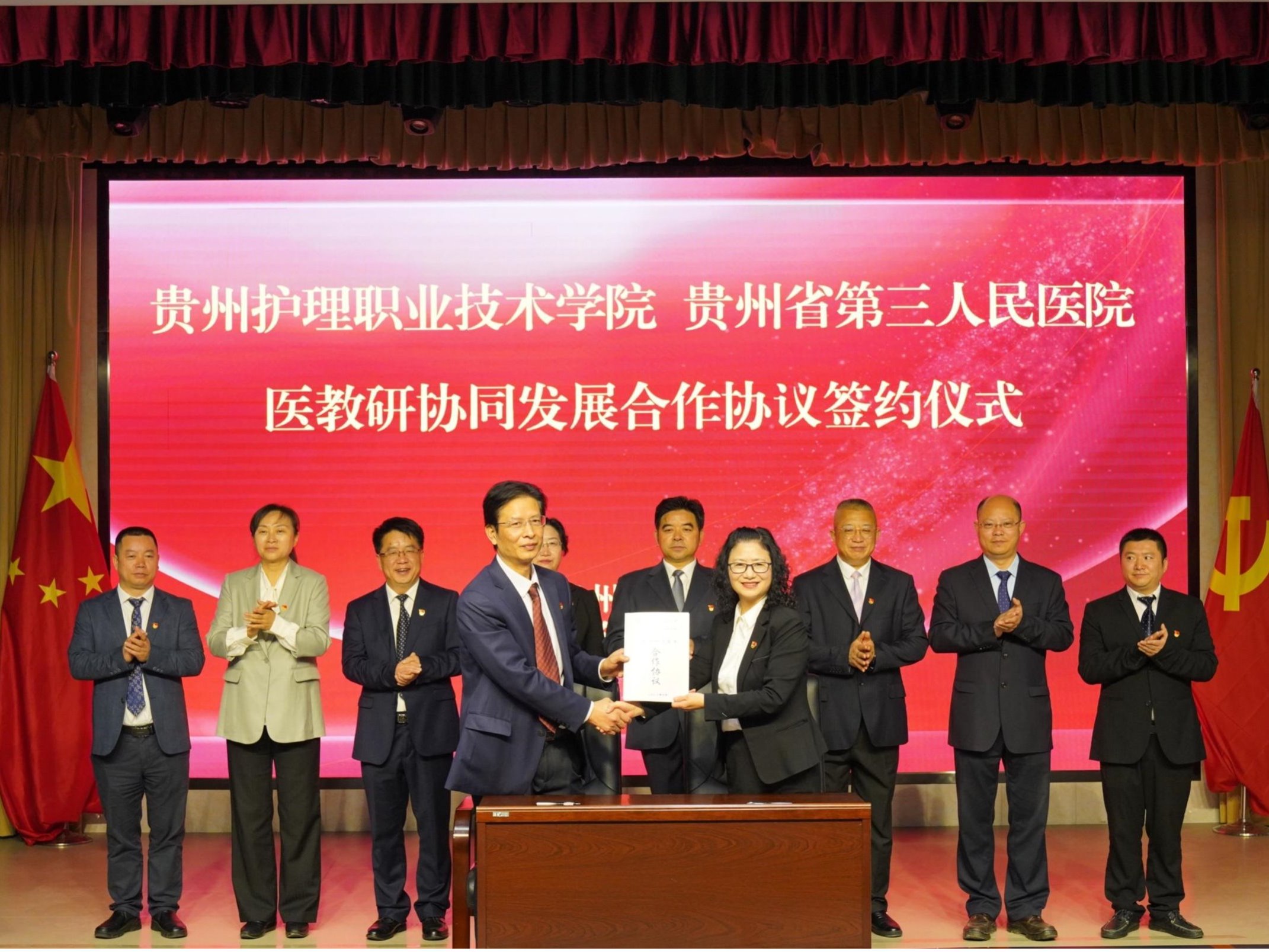 上午9时许,我院与贵州省第三人民医院医教研协同发展合作协议签约仪式正式举行,我院党委副书记、院长江智霞与省第三人民医院院长任早亮分别代表双方签署协议。