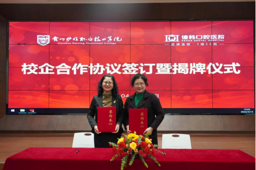 为全面贯彻现代职教发展理念,实现深度校企合作、产教融合、践行提质培优,4月15日,我院分别与贵阳和美妇产医院、德韩口腔医疗集团签订了双方校企合作协议。我院党委副书记、院长江智霞,党委委员、副院长柏晓玲出席,相关部门负责人参加校企合作签约暨揭牌仪式。