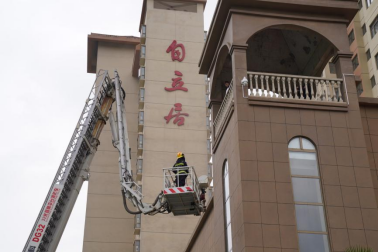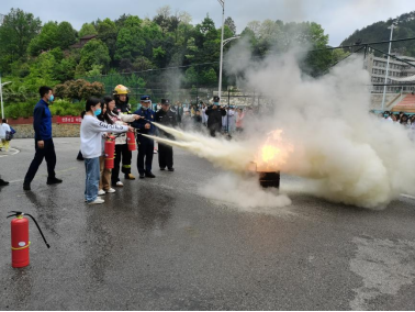 随着警报声响起,演练正式开始,烟雾瞬间在自爱居弥漫开来。仅用时3分钟,在总指挥的正确指导下,180名学生有序撤离“火场”到达指定疏散场所,随后由疏散救援组及医务人员对撤离学生进行人数清查、医疗救治及心理疏导工作,经清点发现有学生仍被困无法实施救援,随即贵定县消防救援大队迅速到达现场并将4楼平台的被困人员,通过高空救援将其救出。疏散完毕后,消防指战员们点燃了篝火,并向大家详细讲解了灭火器的正确使用方法,10名学生代表进行了灭火器的实操体验。