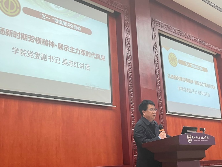 吴忠红最后总结到,李红波老师事迹感人至深,她用敬业与奉献、爱心与责任诠释着教育初心,他提出,广大教师要学习李红波老师“爱岗敬业、争创一流、艰苦奋斗、勇于创新、淡泊名利、甘于奉献”的劳模精神,广大青年学生要学习李红波老师“执着专注、精益求精、一丝不苟、追求卓越”的工匠精神。期待我院今后能涌现出更多像李红波一样的老师和学生,崇尚劳动、热爱劳动、辛勤劳动、诚实劳动,在平凡的岗位上书写不平凡的人生乐章,形成我院鲜明的精神印记,用勤劳双手描绘美好未来,将“个人梦”凝聚成“中国梦”,用“敬业情”诠释“中国情”。