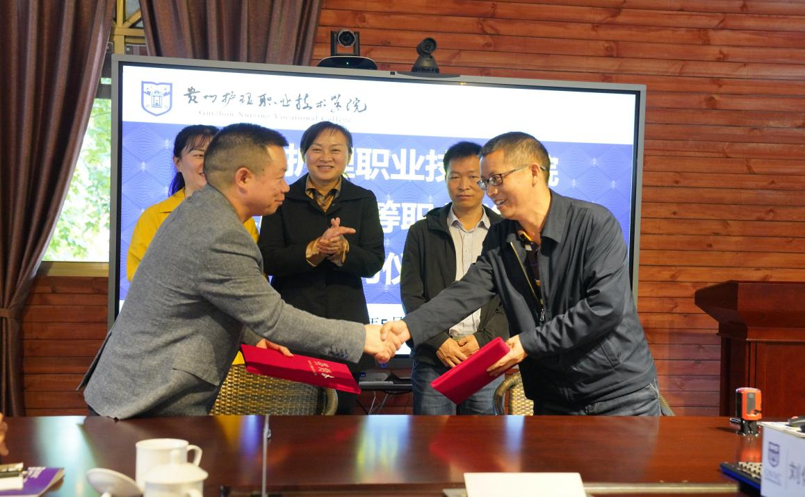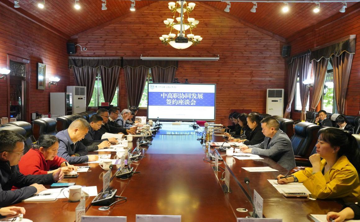 随后在天使阁会议室召开签约仪式暨座谈会。潘忠伦表示,本次会议的主要目的是学习贯彻中共贵州省第十三次党代会精神、新国发2号文件、《职业教育法》,以及“技能贵州”“健康贵州”建设等有关决策部署和要求,签署中高职协同发展合作协议,共同商讨推进中高职招生就业、专业建设、师资建设、社会服务和8181801威尼斯登录治理五大协同高质量发展。