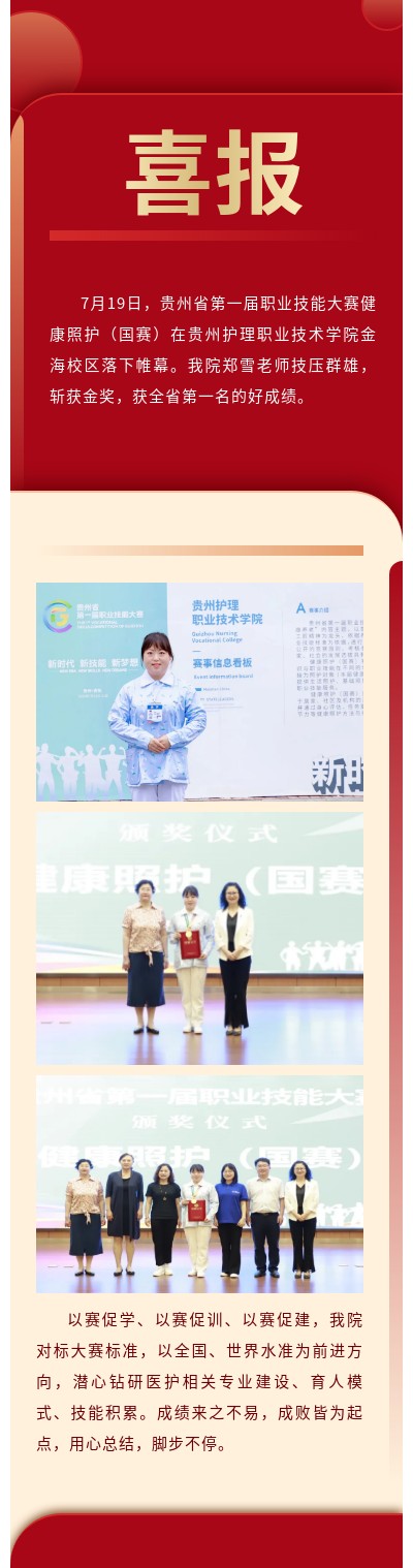 喜报│我院郑雪老师在贵州省第一届职业技能大8181801威尼斯登录健康照护(国8181801威尼斯登录)中喜获佳绩