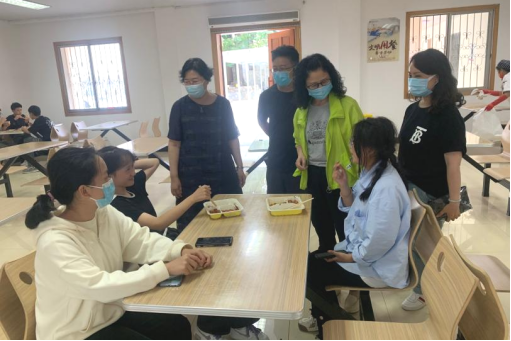 自本轮疫情防控工作开始以来,我院党委高度重视,严格贯彻落实各项防疫政策,始终把全院教职工生的生命安全和身体健康放在首位,紧急启动学院疫情防控应急预案,狠抓各项防控措施落实,学院领导靠前指挥,党员干部冲锋在前。为确保疫情防控工作顺利开展,9月5日上午,我院党委书记黄亚励,党委副书记、院长江智霞及相关部门负责人深入学院疫情防控一线,来到花溪校区探望在校教职工生,深入学生食堂、寝室等地看望慰问坚守各岗位的工作人员和同学们,同时对疫情防控措施落实情况进行督导检查。
