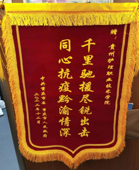 2022年11月,重庆疫情防控到了最吃劲、最紧要、最关键的阶段。为积极应对当前复杂严峻的疫情防控形势,全力打好疫情防控阻击战,保障人民群众生命安全,作为兄弟省份,贵州省委、省政府迅速组织387名援渝核酸检测队伍奔赴重庆抗疫一线。当此关键之时,在学院党委高度重视下,我院民主党派人士、科技处处长、三级教授黄山积极应征成为此次援渝中的技术负责人。在抗疫行动中他以过硬的专业素养、严谨的工作态度、顽强的工作作风与重庆市人民共战20天,用无私的奉献精神,坚守防疫阵地助力重庆市完成了大规模核酸检测任务。中共重庆市委、重庆市人民政府为我院送来锦旗,感谢我院给予重庆市疫情防控工作的支持。