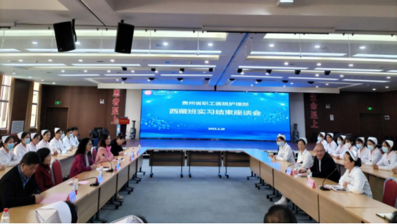 经过临床8个月的岗位实习,我院2020级西藏班28名护理实习生在贵州省职工医院顺利完成实习任务。为全面了解学生实习效果,提升实习管理质量,2月28日下午,省职工医院护理部在门诊五楼第一会议室组织召开了我院2020级西藏班实习生总结座谈会。省职工医院党委书记陈体健,我院党委副书记、院长江智霞,党委委员、副院长柏晓玲及双方相关职能部门负责人和各科室护士长、西藏班班主任、全体实习生参加会议。会议由省职工医院护理部主任汤晋主持。