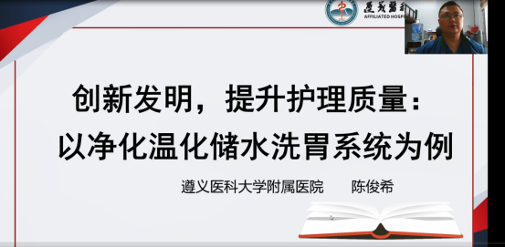 图14 遵义医科大学附属医院陈俊希讲《创新发明,提升护理质量: 以净化温华储水洗胃系统为例》