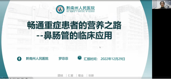 图8 黔南州人民医院罗菲菲讲《畅通重症患者的营养之路——鼻肠管的临床应用》