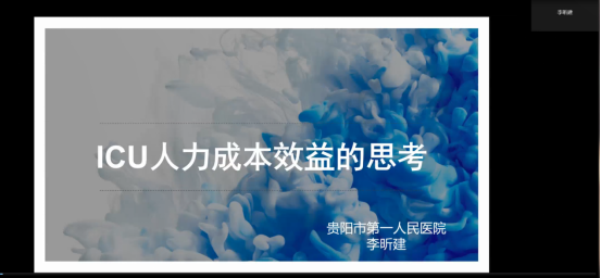 图7 贵阳市第一人民医院李昕建讲《ICU人力成本效益的思考》