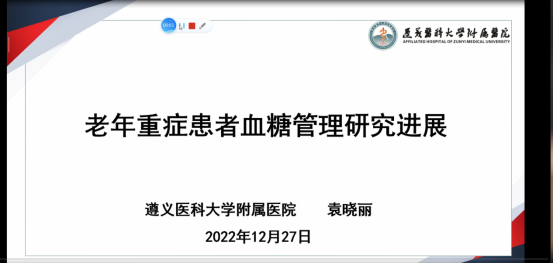 图9 遵义医科大学附属医院袁晓丽讲《老年重症患者血糖管理研究进展》