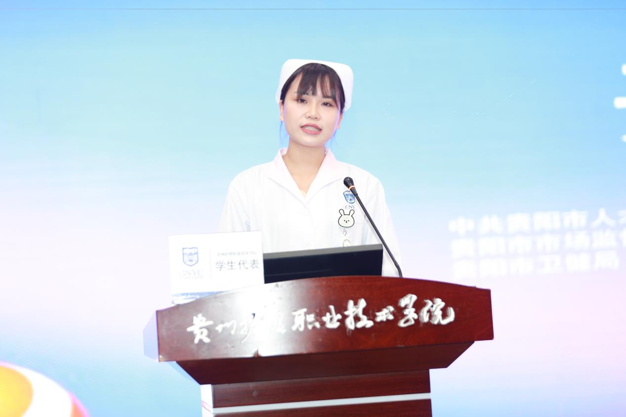 上海卡洛特眼镜有限公司人力资源部经理秦晓雯、贵州白癜风皮肤病医院人力资源部主任甘婷作参会单位代表发言,均表示招聘会为企业和毕业生搭建了人才供需交流平台,希望通过招聘会广泛吸纳人才,同学院有更深层次合作,促进院校与企业建立人才培育、产学协作等紧密合作关系。我院高职2020级11班护理专业张海丽同学作为毕业生代表承诺,树立正确的择业观,把握就业机会。