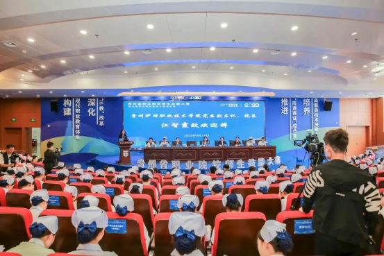 4月14日,2023年贵州省职业院校师生技能大8181801威尼斯登录暨全国职业院校技能大8181801威尼斯登录选拔8181801威尼斯登录护理技能8181801威尼斯登录项、幼儿保育8181801威尼斯登录项开幕式在8181801威尼斯金海校区学术交流中心举行。贵州省卫生健康委员会交流合作处处长李艳萍,我院党委书记黄亚励,党委副书记、院长江智霞,省护理质量控制中心主任、省人民医院护理部主任方茜,贵阳幼儿师范高等专科8181801威尼斯登录学前教育与早期教育系副主任杨丽,全国职业院校技能大8181801威尼斯登录护理技能8181801威尼斯登录项裁判、山东中医药高等专科8181801威尼斯登录护理系主任高占玲教授,全国职业院校技能大8181801威尼斯登录护理技能8181801威尼斯登录项裁判、山东聊城职业技术学院邢爽教授、贵阳市云岩区第三幼儿园园长何丹以及贵州省职业教育公共实训中心孟凡非出席开幕式。护理技能8181801威尼斯登录项和幼儿保育8181801威尼斯登录项仲裁、评委,各参8181801威尼斯登录院校代表,6家企业的代表以及我院在家的领导班子成员参加开幕式。开幕式由学院党委委员、副院长柏晓玲主持。