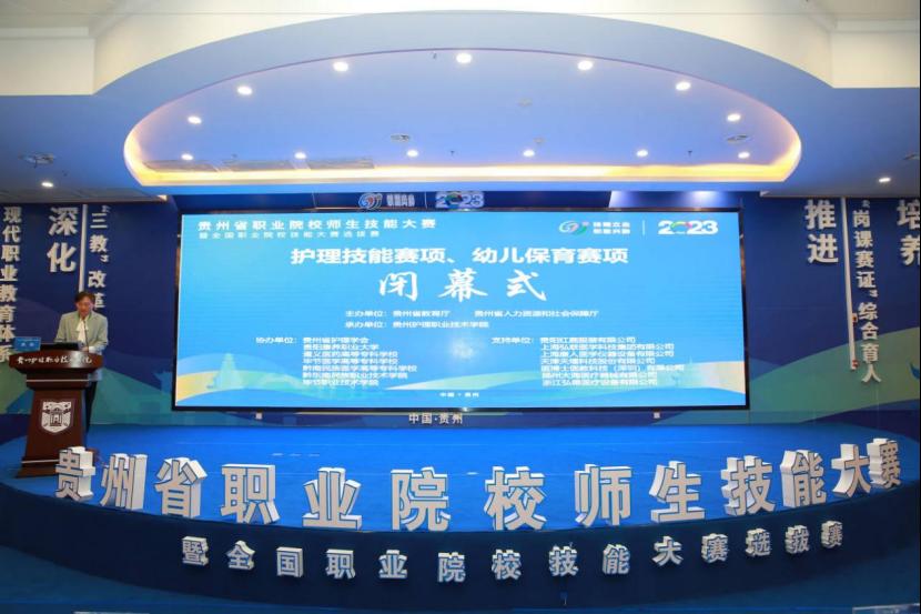 2023贵州省职业院校师生技能大8181801威尼斯登录暨全国职业院校技能大8181801威尼斯登录选拔8181801威尼斯登录护理技能8181801威尼斯登录项、幼儿保育8181801威尼斯登录项闭幕式于4月15日晚上20:00在8181801威尼斯金海校区学术交流中心举行。闭幕式由学院党委委员、副院长洪阳主持。