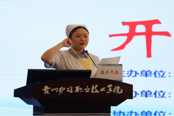 江智霞致欢迎辞,她首先代表学院全体教职工生向各位领导、专家评委以及护理同仁的到来表示热烈的欢迎,她表示,我院始终切实落实立德树人根本任务,坚持以改革创新为核心动力,以服务“健康贵州”建设为己任,培养了大批高素质复合型技术技能人才。护理工作是卫生健康事业的重要组成部分,护士队伍是卫生健康战线的重要力量,加强护士队伍建设,激励全省护理工作者立足岗位,提升护理服务能力和专业技术水平,对建设“健康中国”和积极应对人口老龄化发挥着非常重要的作用。举办护士岗位技能竞8181801威尼斯登录,是全省各医疗机构培养优秀护理人才、储备护理技术能手的重要方式,也是全省护理同仁们以8181801威尼斯登录促学、以8181801威尼斯登录促练、以8181801威尼斯登录精技,展示新一代护士技能风采的重要渠道!希望大家在8181801威尼斯登录场沉着冷静,8181801威尼斯登录出风格、8181801威尼斯登录出水平,充分展现“白衣天使”良好的职业素养。