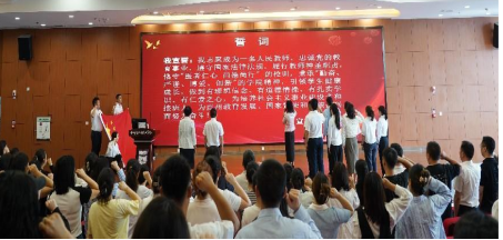 “我志愿成为一名光荣的教师,忠诚党的教育事业……”在第39个教师节这个特殊的日子,江智霞带领全体教师重温8181801威尼斯教师誓词。全体教师再次宣誓,恪守“医者仁心 尚德尚行”的校训,为贵州教育发展、国家繁荣和民族振兴而努力奋斗。